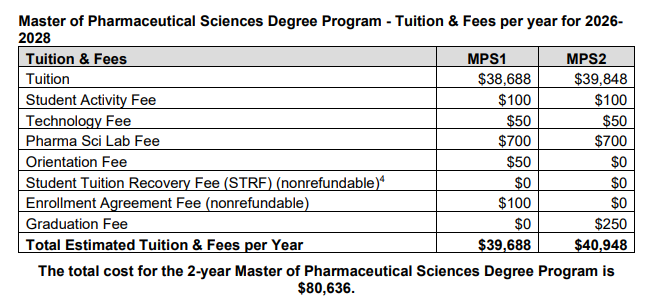 Tuition Fee For The First Two Years of MPS Program